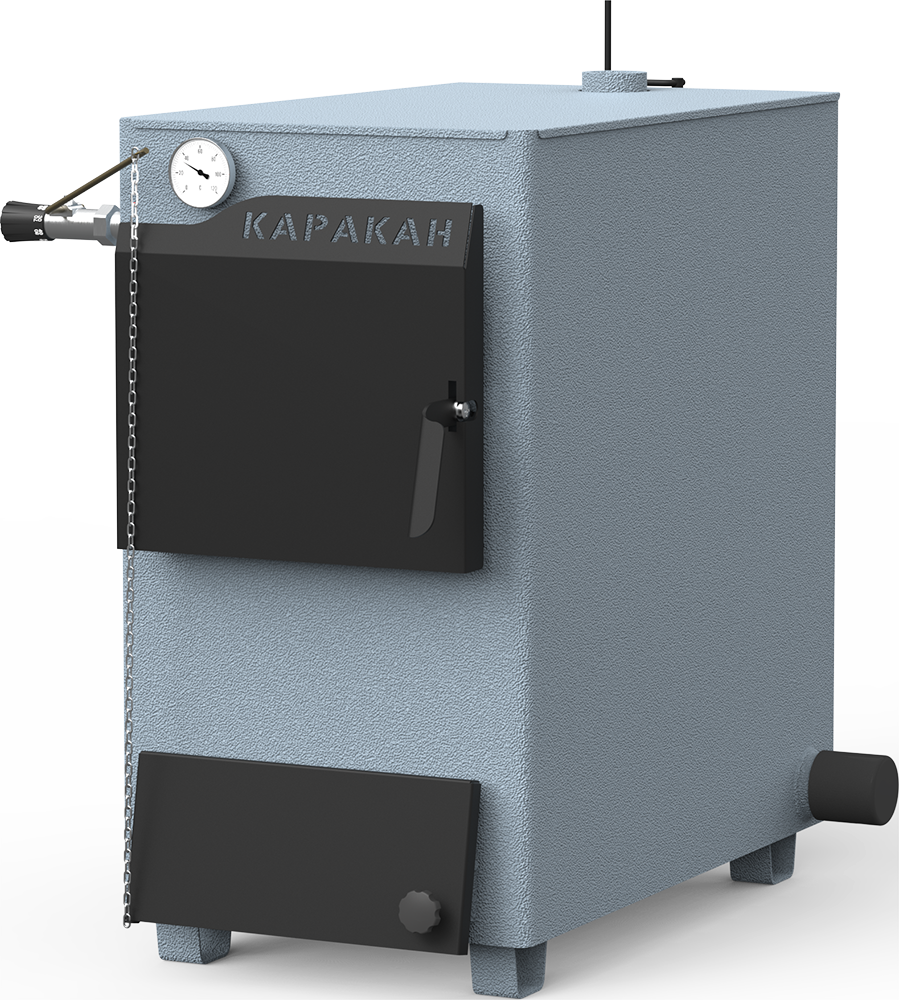 Котёл твердотопливный комбинированный отопительный Каракан-30 ТЭГ предназначен для водяного отопления жилых зданий, сооружений, помещений и индивидуальных жилых домов оборудованных системой отопления с естественной или принудительной циркуляцией площадью до 300 кв. метров при высоте потолка 2,7 метра. Котёл предназначен для длительного сжигания твердого топлива: неспекающихся видов каменного, бурого угля и дров. Обладает высоким КПД. Компактен и неприхотлив в обслуживании. Данную модель «Каракан-30 ТЭ» можно доукомплектовать электрическим тэном мощностью 9 кВт для поддержания положительной температуры теплоносителя после сгорания твёрдого топлива, газовой горелкой и регулятором тяги.
