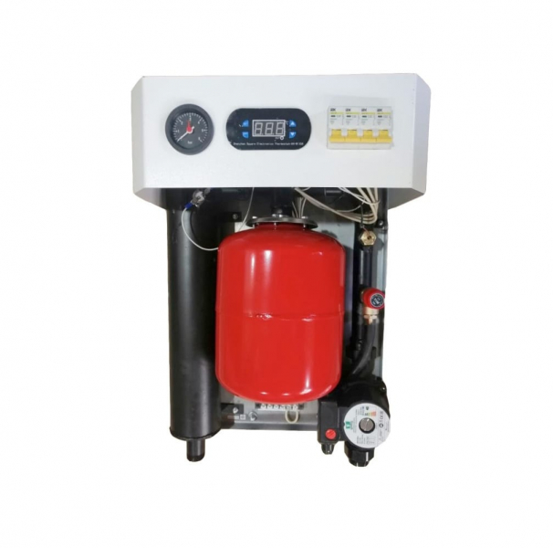 В состав миникотельной входит: корпус, стальная емкость с нагревательными элементами, блок ТЭН из нержавеющей стали, аппаратура управления, расширительный бак объемом 8 литров, циркуляционный насос с медной обмоткой статора, автоматический воздухоотводчик, предохранительный клапан, термоманометр, электронный термостат, аварийный термостат, дренажная трубка, крепеж.