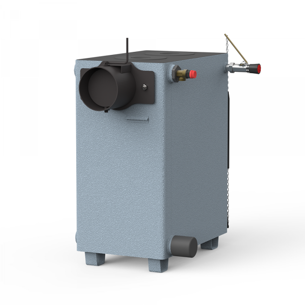 Котёл отопительный Каракан-14 ТПЭ предназначен для водяного отопления помещений площадью до 140 кв.м, оснащен варочной плитой на одну конфорку, мощность 40 кВт. Дымоход круглый. Котел можно доукомплектовать электрическим ТЭНом и регулятором тяги.