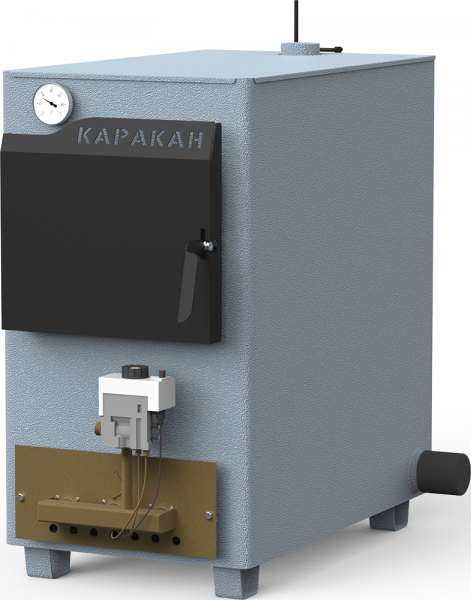 Котёл твердотопливный комбинированный отопительный Каракан-30 ТЭГ предназначен для водяного отопления жилых зданий, сооружений, помещений и индивидуальных жилых домов оборудованных системой отопления с естественной или принудительной циркуляцией площадью до 300 кв. метров при высоте потолка 2,7 метра. Котёл предназначен для длительного сжигания твердого топлива: неспекающихся видов каменного, бурого угля и дров. Обладает высоким КПД. Компактен и неприхотлив в обслуживании. Данную модель «Каракан-30 ТЭ» можно доукомплектовать электрическим тэном мощностью 9 кВт для поддержания положительной температуры теплоносителя после сгорания твёрдого топлива, газовой горелкой и регулятором тяги.