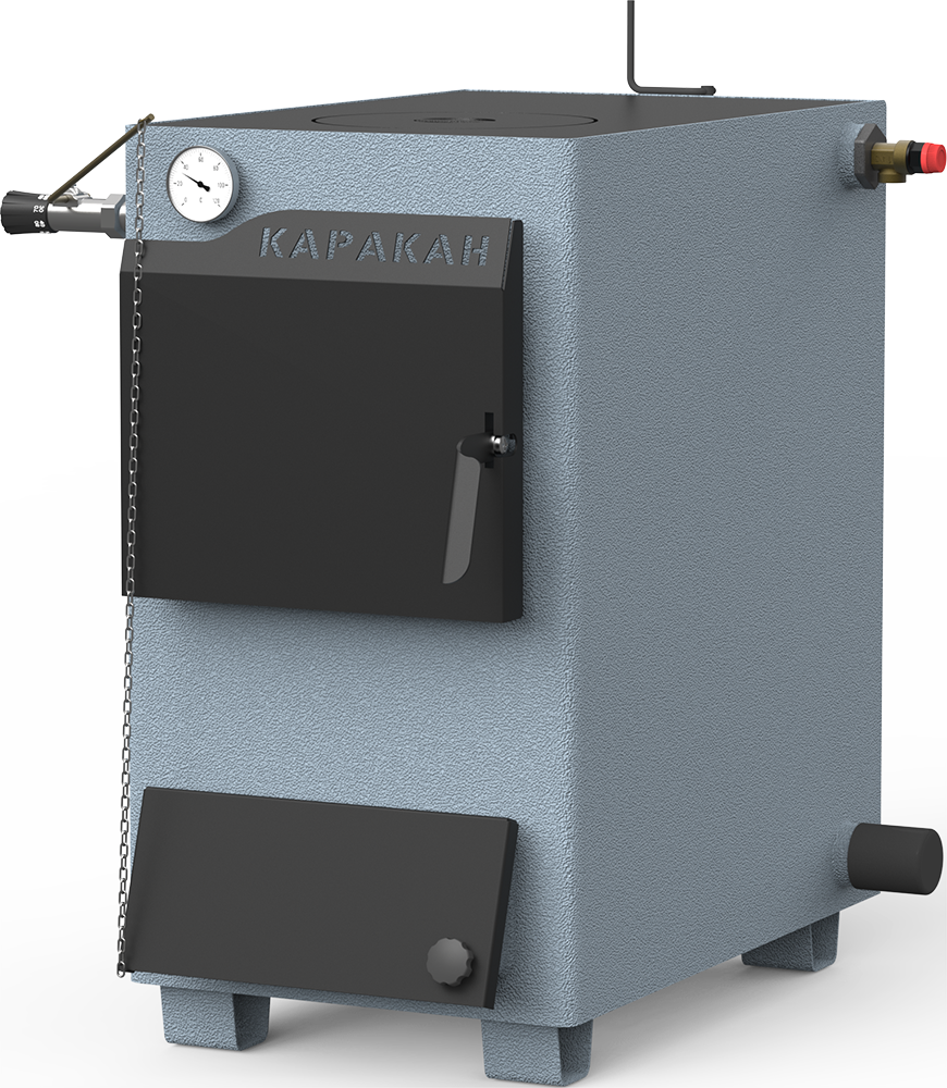 Котёл твердотопливный комбинированный отопительный Каракан-20 ТПЭ. Разработан для водяного отопления жилых зданий, различных сооружений, помещений и индивидуальных жилых домов, коттеджей , которые оборудованы системой отопления с естественной или принудительной циркуляцией. Площадь обогрева до 200 кв. метров. Котёл предназначен для сжигания твердого топлива длительное время. Такие виды топлива как :каменного уголь, бурый уголь, дрова и электричество. Имеет высокий КПД. Компактность и неприхотливость в обслуживании. В модели есть чугунная варочная плита с одной конфоркой что очень удобно для приготовления пищи. Для поддержки положительной температуры после сгорания твёрдого топлива можно установить электрический ТЭН до 9 кВт и регулятор тяги.