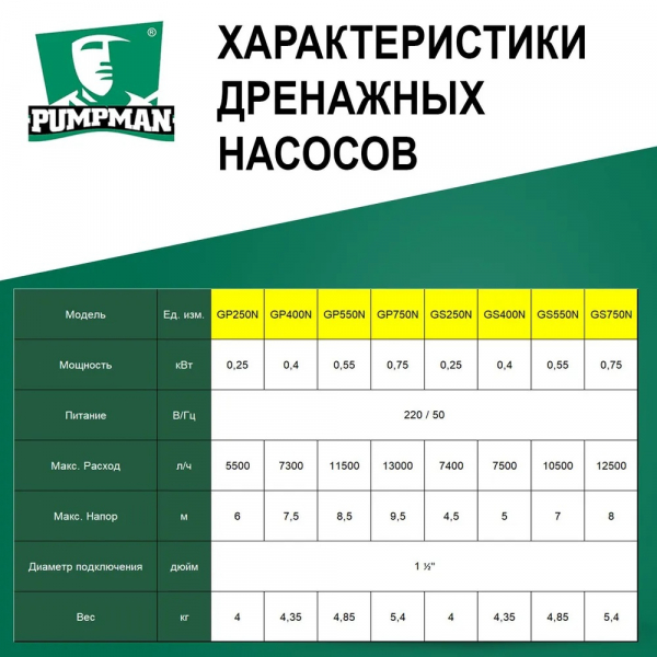 Дренажный насос Pumpman GP400N используются для воды, загрязненной мелкими частицами, размером не более 5 мм.