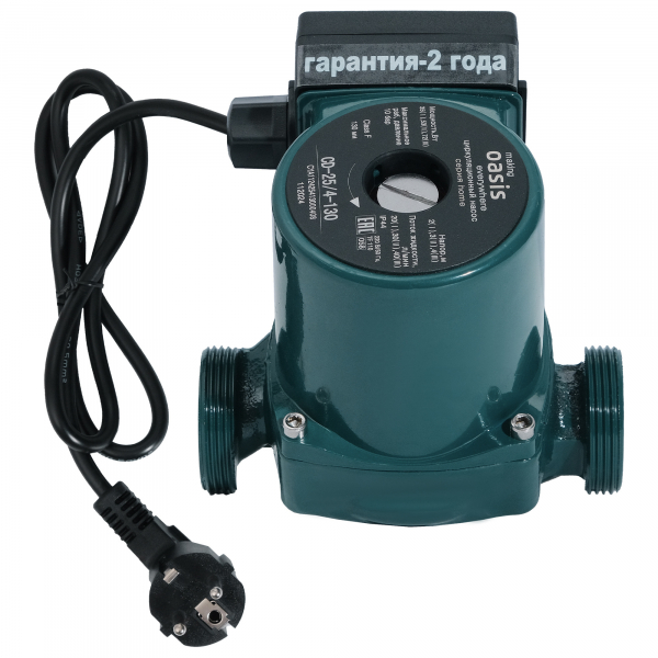 Циркуляционный насос Oasis C 25/4 обеспечивает циркуляцию воды в системах отопления, а также системах обогрева полов. Прибор имеет небольшие габаритные размеры и вес, работает практически бесшумно и потребляет мало электроэнергии. Циркуляционные насосы «Oasis» применяют в загородных домах, так как естественная конвекция не сможет обеспечить равномерный прогрев всех отопительных приборов.