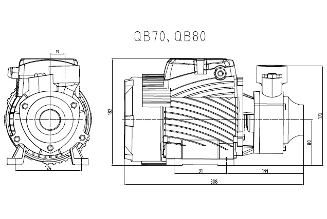 Поверхностный вихревой одноступенчатый нормальновсасывающий насос серии QB применяется для перекачивания воды из скважин, колодцев и других источников водоснабжения. Также подходит для установки на магистральный трубопровод.